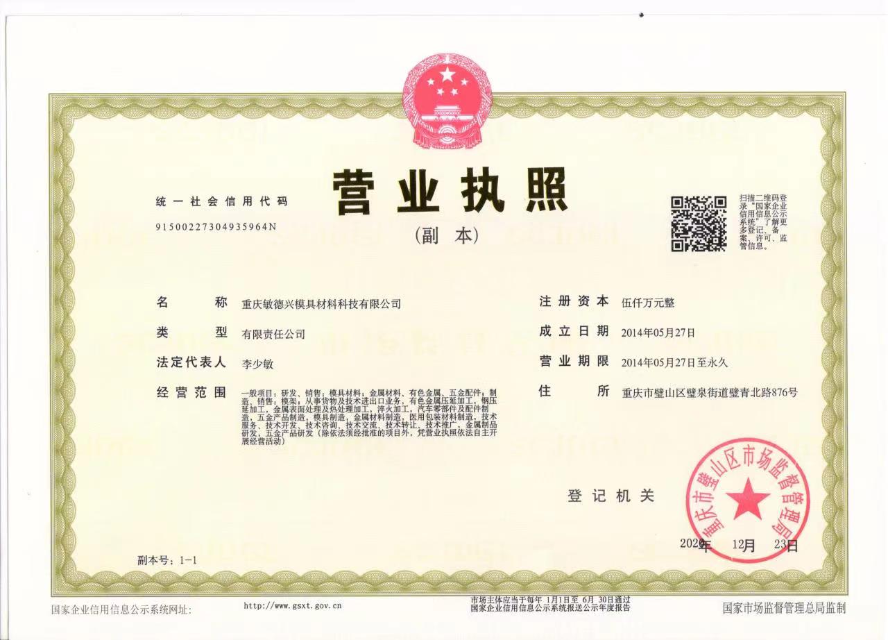 重慶敏德興模具材料科技有限公司